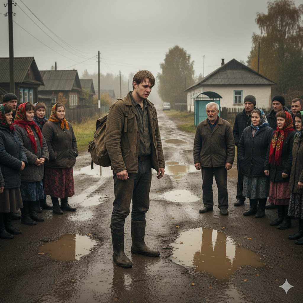 Прошло два дня и над деревней пронесся слух, что Мишка собрался уезжать из деревни навсегда в город. Он сам развеял все слухи, с рюкзаком через плечо стоял посреди деревни у администрации, потому что неподалеку была остановка автобуса, вокруг собрались односельчане.