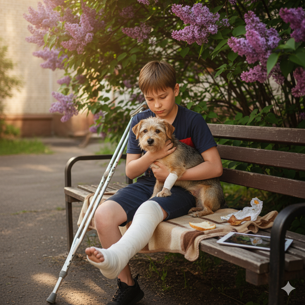 — Вижу, что ты каждый день здесь подолгу сидишь, занимаешься… — начала баба Зина, присев на скамейку, — У нас собака после серьезных травм в клинике. Сейчас уже потихоньку на поправку пошла, но она лежит все время, а ей бы тоже на солнышке погреться да воздухом подышать…
