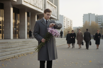 …Андрей вбежал в роддом, назвал свою фамилию. Дежурная за барьером стала рыться в списках, а Андрей расстегнул пальто, развел шарф на горле, вытер пот.