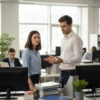 Она стояла у входа в магазин учебной литературы, держа в руках несколько книг в ярких обложках. Её волосы были собраны в гладкий пучок, лицо казалось спокойнее, чем он помнил, но такое же серьёзное. На ней были те же очки, что когда-то давно, только дороже оправа.