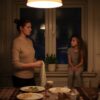 — Ура! Мы остаёмся дома! – кричит сын и направляет струю воды отцу в лицо.