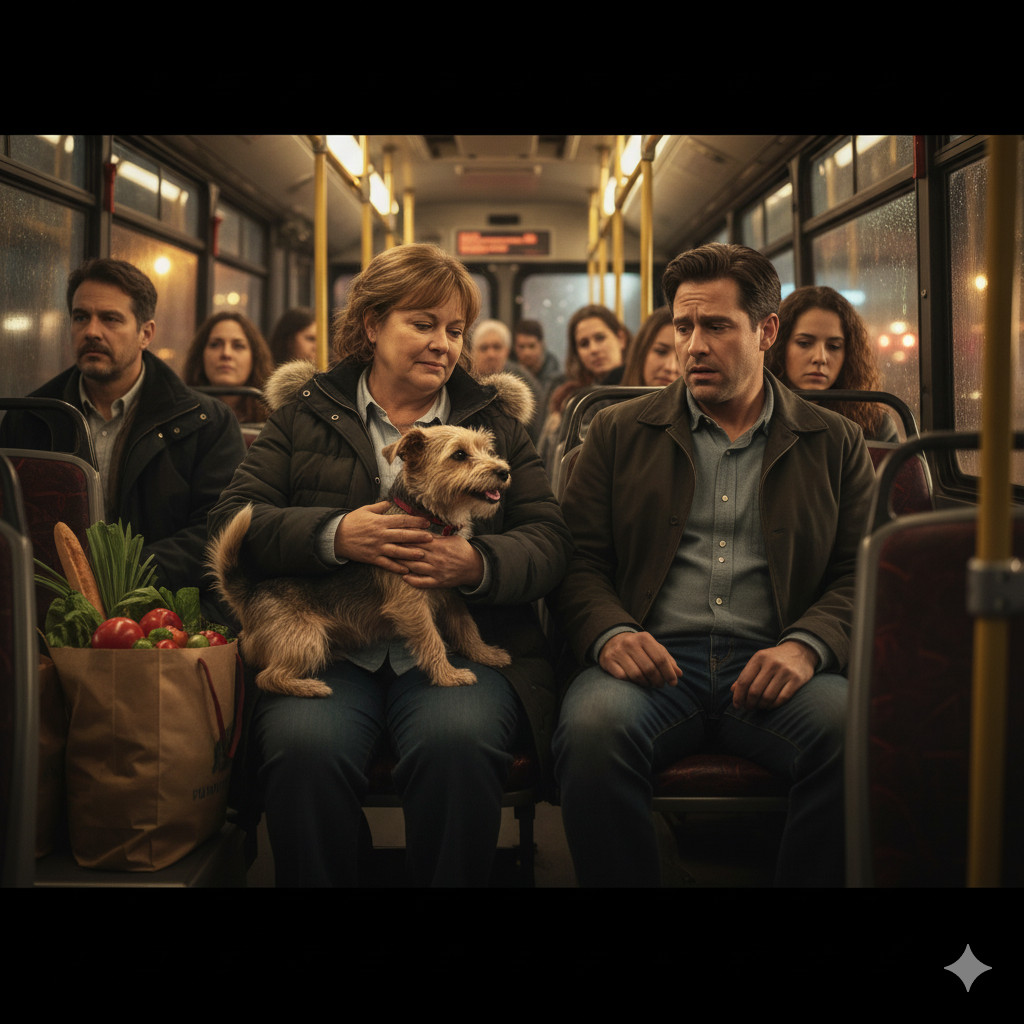 Через несколько остановок он сердито заметил женщине, хозяйке собачки: