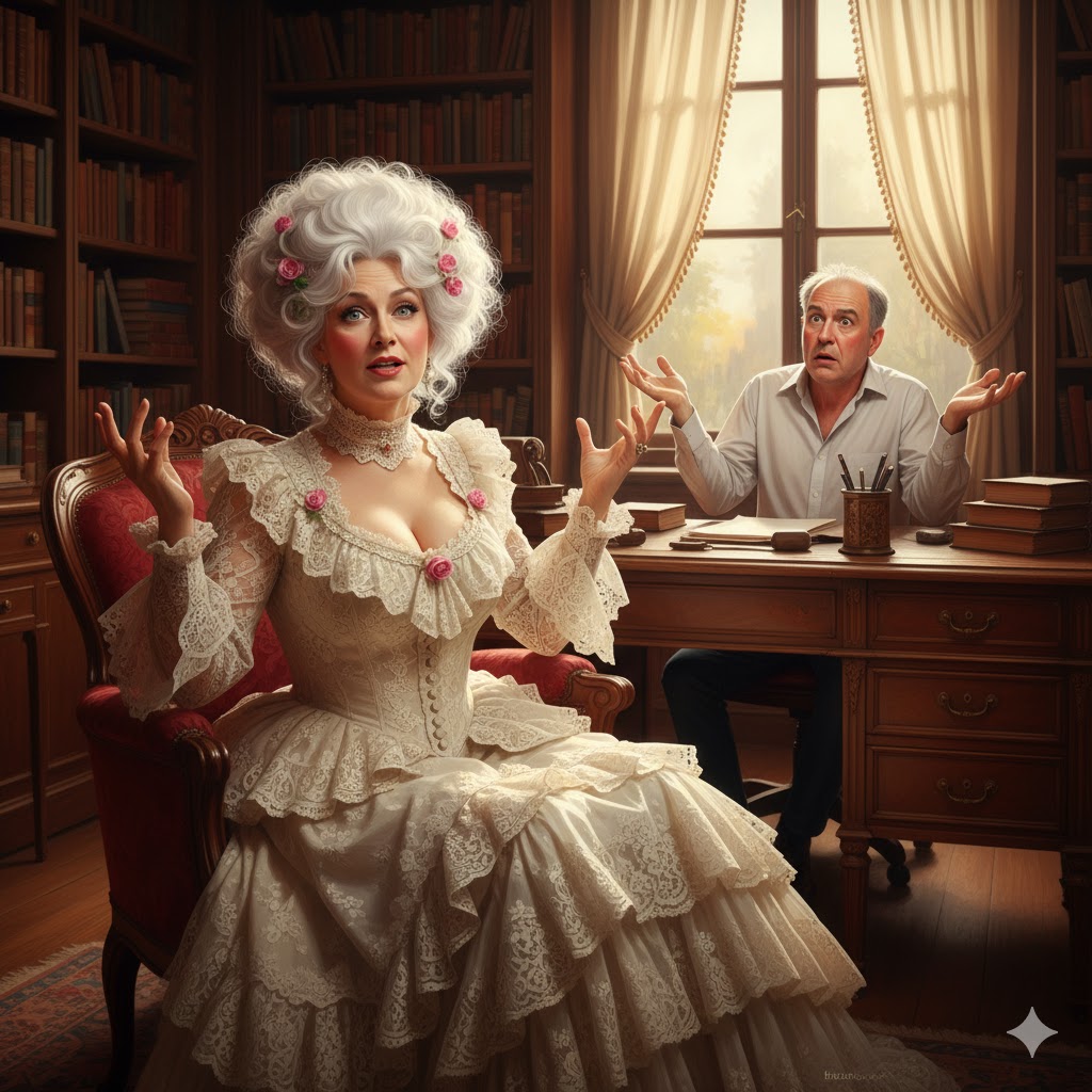 — Конечно! Ведь к этим годам у женщины всё становиться таким… округлым и аппетитным… И вот представьте, ваша супруга входит в ваш кабинет, и сначала она видит меня, всю ажурную и прозрачную. Как думаете, что она сразу же скажет?