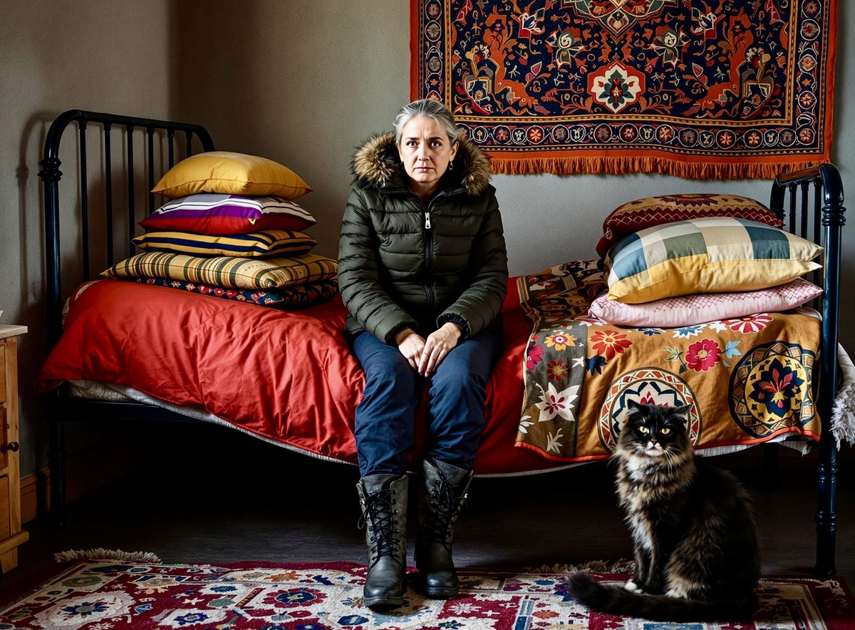 Она лежала в кровати, одетая в телогрейку, ноги ее были обуты в сапоги. Забежавшая соседка заволновалась:
