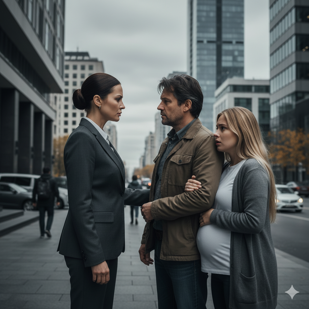 В этот момент из нотариальной конторы вышел Виктор. Увидев обеих женщин, он застыл.