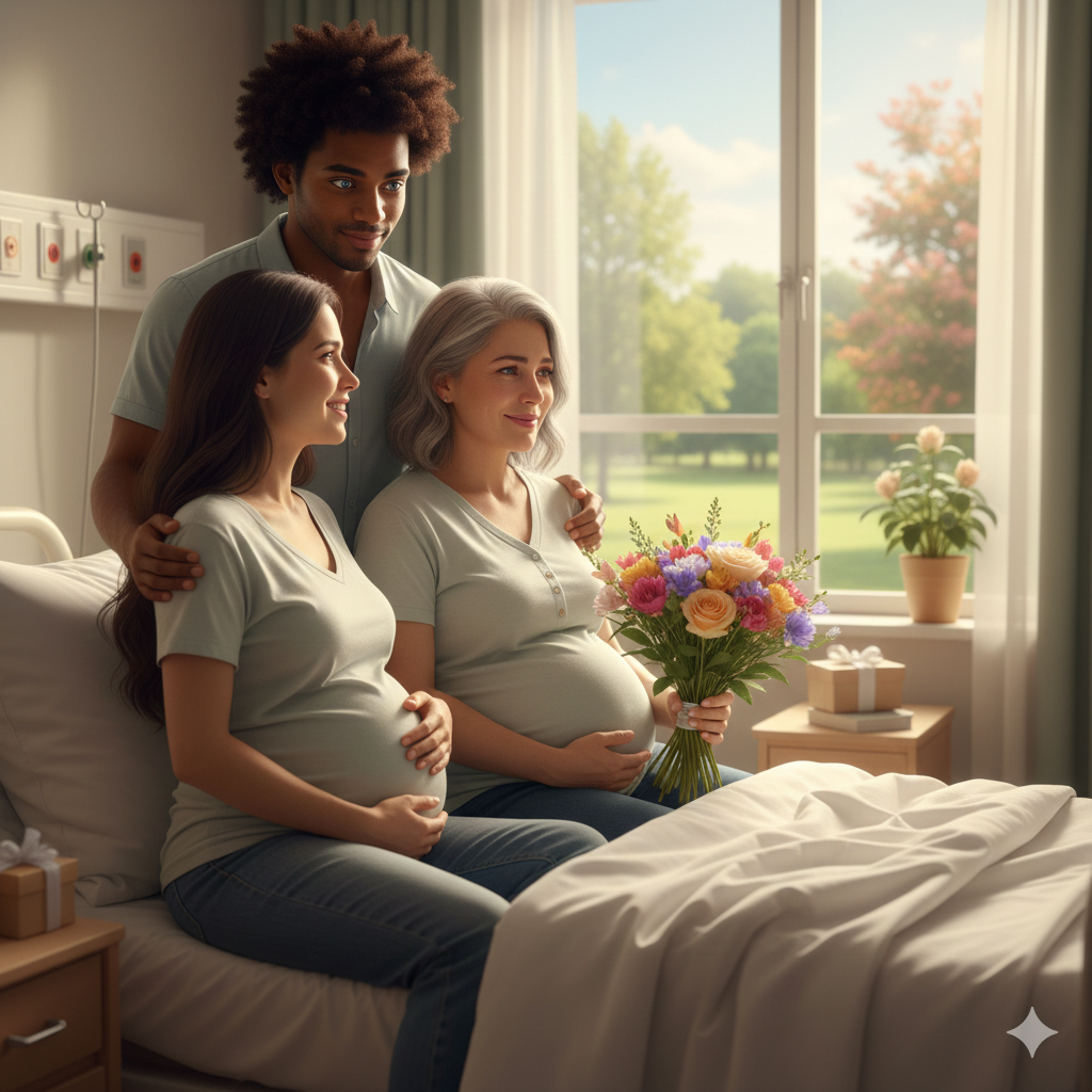 Её положили в больницу на сохранение (возраст уже не молодой, и первого ребёнка она потеряла). Зайдя в палату, она увидела там молодую красивую женщину. Её глаза были такие лучистые, голубые, как лесные озерца. Молодая женщина представилась: