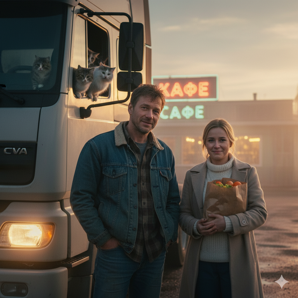 Егор согласно кивнул своему пушистому напарнику (мол, не переживай, мимо не проедем) остановил фуру, выпрыгнул из кабины и подошел к этому серо-белому бездомышу.