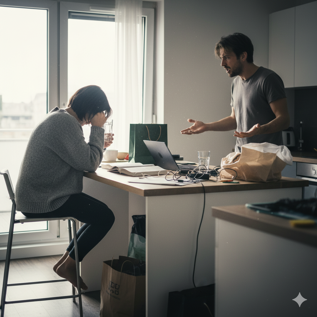 — Ты не знала, что она у тебя клептоманка? Серьёзно?! А то, что она подрезала телефоны наши, пока мы были у твоих родителей в гостях? А когда она в кафешке на наших глазах пыталась два стакана себе в сумку запихать? Тебя это ни на какие мысли не навело? Нет? А когда я тебе говорил, что она клептоманить скоро начнёт по-чёрной? А это как раз-таки уже случилось! Только не где-то, а именно в нашей квартире!