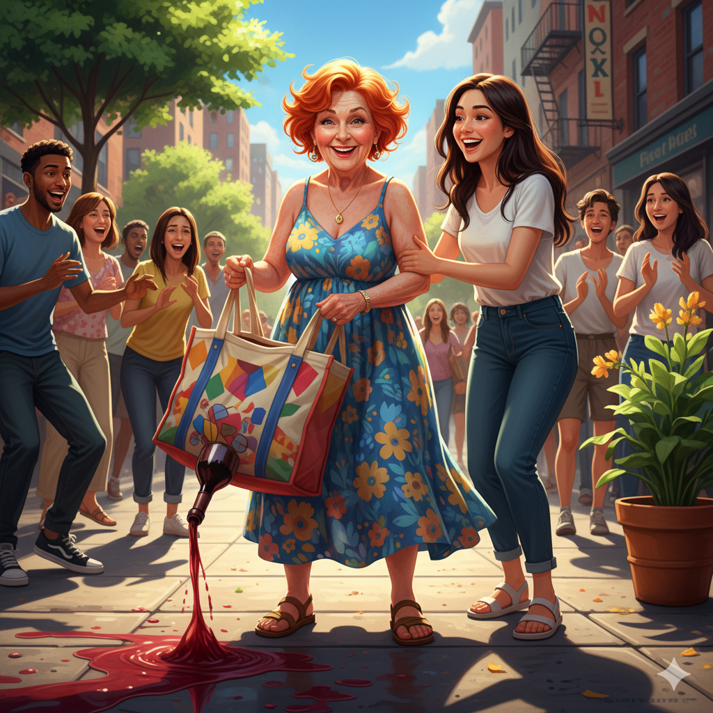 А однажды Надежда Викторовна со своей подругой Елизаветой Степановной отдыхали в Сочи. Гуляя по городу, они увидели, как молодой кавказский парень, пытаясь познакомиться, не давал прохода одной очень миловидной девушке. Девушка уже чуть ли не плакала, но отделаться от назойливого ухажера не могла. Тогда Елизавета Степановна решила вмешаться и вежливо попросила парня отстать от девушки. Парень также вежливо посоветовал бабушке идти туда куда шла, пока косточки не растеряла. И пока Елизавета Степановна уговаривала парня, Надежда Викторовна просто с размаху ударила его сумкой по голове. Только она забыла, что перед этим они купили бутылку красного вина и положили ее в эту «дамскую» сумку. Парень упал, а из сумки Надежды Викторовны стало вытекать только что купленное, красное вино. За это она еще пнула его ногой и обругала очень нецензурными словами. Мимо проходил патруль и они еще долго разбирались, кто прав, а кто виноват. На счастье, любвеобильный парень отказался жаловаться на бабушку, которая его уделала.