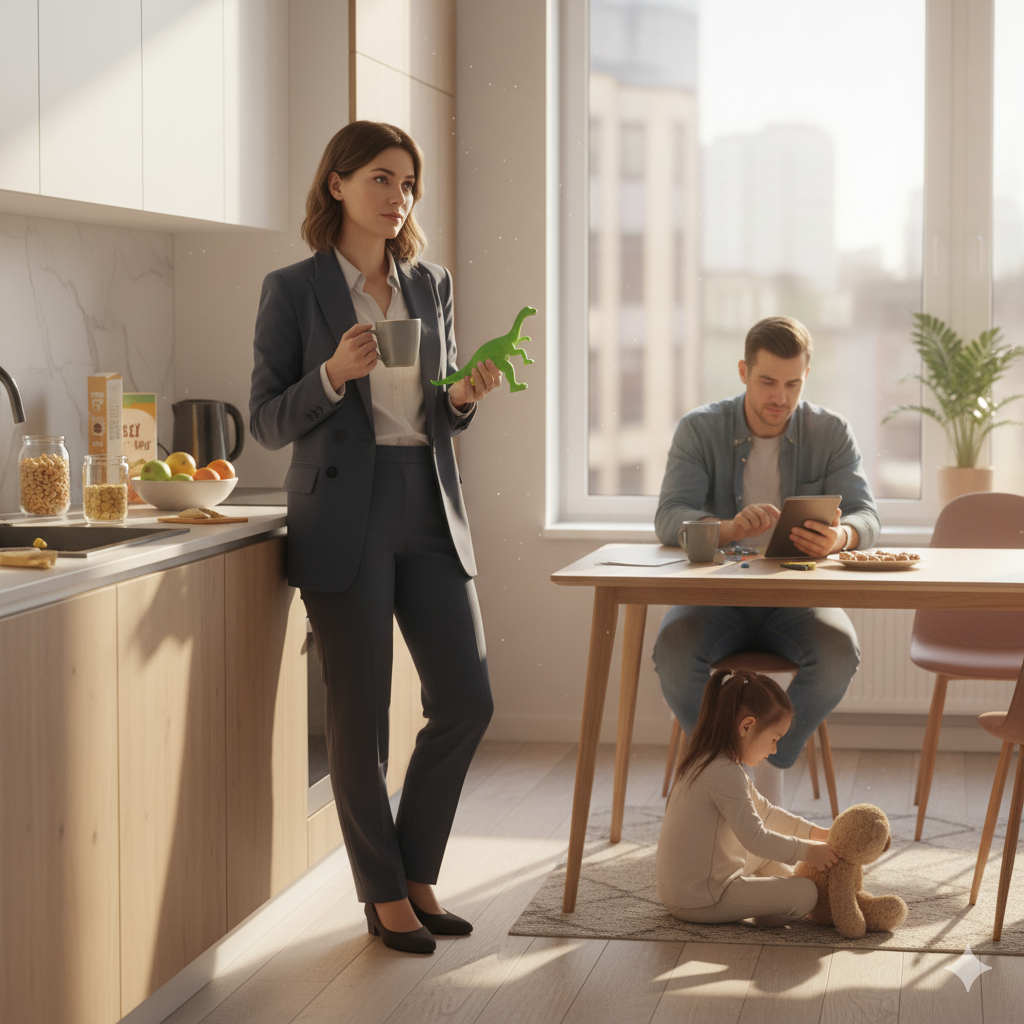 — Олег, ну хоть ты помоги! Где Викин любимый динозаврик? Без него она в сад не пойдет! — взмолилась Ася, заглядывая под кухонный диван.