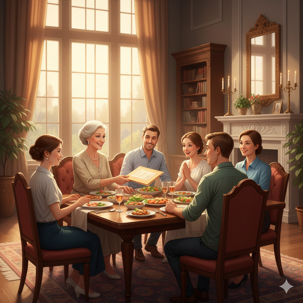 Наконец, слово взяла Лизавета Петровна. Она поздравила внука с днём рождения, пожелала ему всего наилучшего и перешла к главному.
