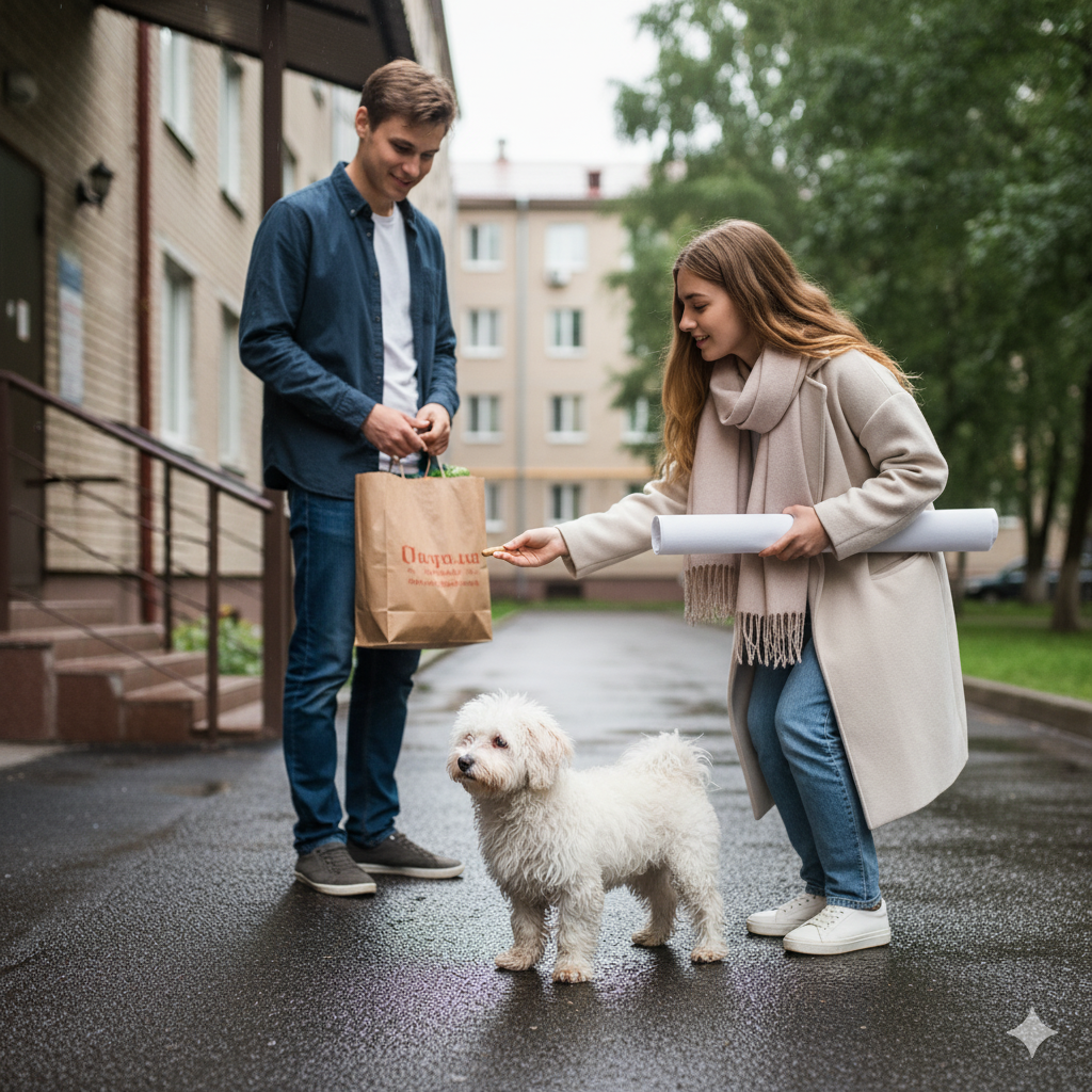 — Купи какие-нибудь собачьи вкусняшки. Ну и что, что дорогие? Тебя кормить буду! Тоже мне шутник. Просто купи. Надо, говорю. Что ты за человек. Ладно, ладно. Я напротив спортивной площадки рядом с универом. Да, она самая. Когда будешь? Жду!