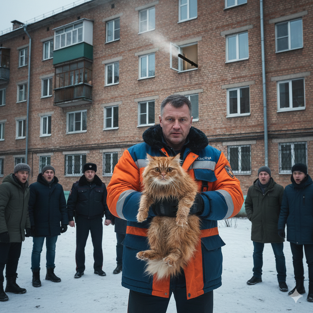 Вот только все, кто собрался на улице, благодарили кого угодно (участкового, спасателя, сотрудников службы газа), но только не рыжего кота. И знаете, Александру это показалось очень странным.