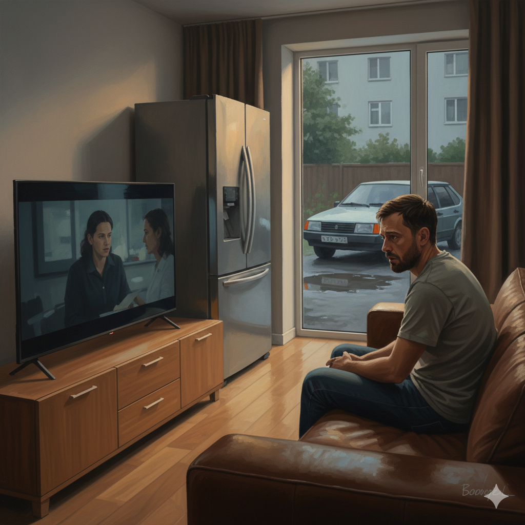 Сергей смотрел телевизор, но не видел ничего. По экрану бегали какие-то мультяшные герои, доносились взрывы и веселые реплики. Он слышал только гул в собственной голове.