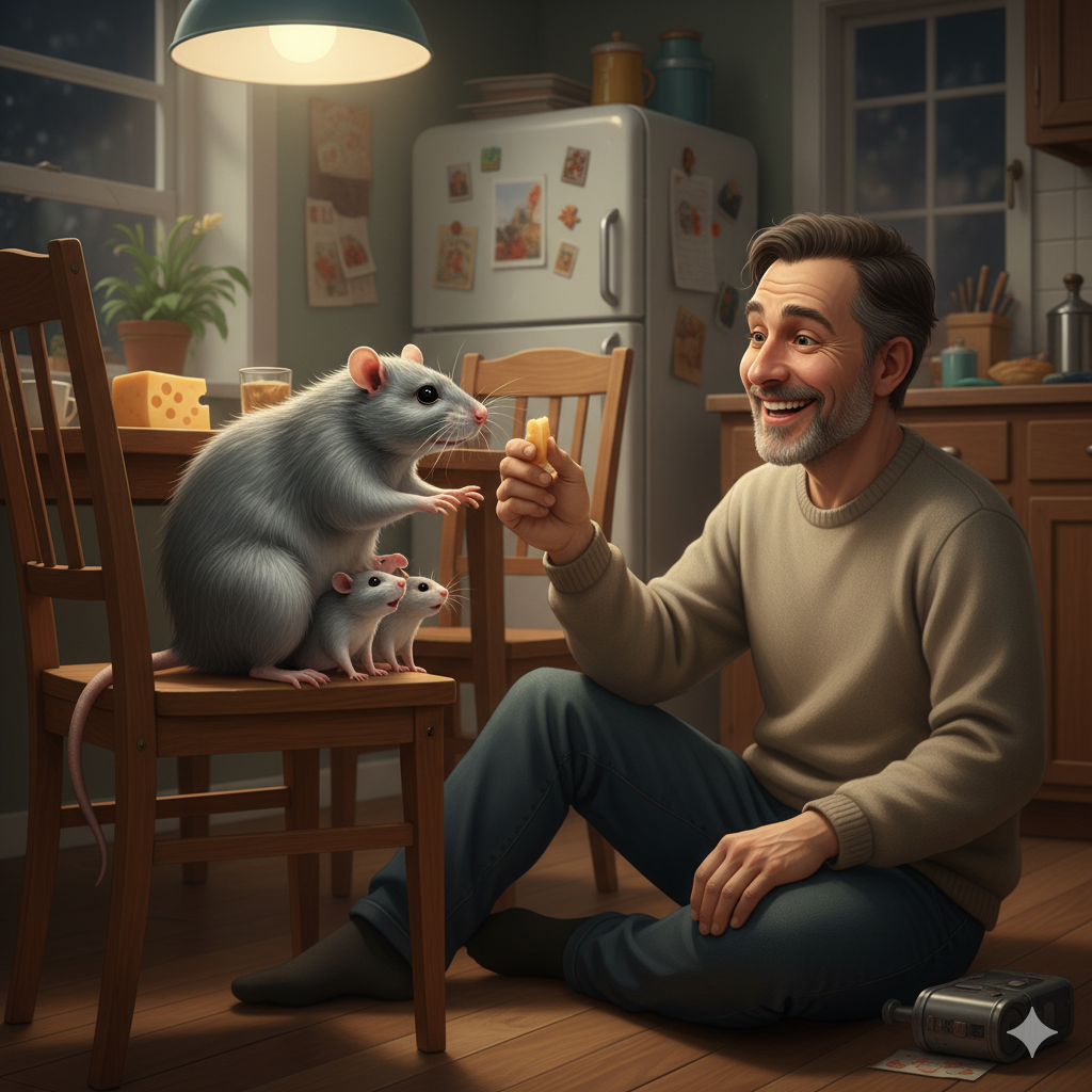 Малышам он тоже дал имена и так нежно их поглаживал, что их крысиная мама хватала его лапками за пальцы и тёрлась об них.