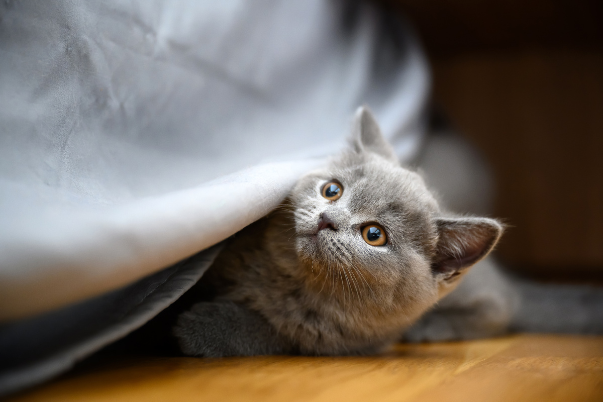 Открыв дверь пошире, она вошла в комнату и заметила маленького серенького котенка, выглядывающего из-под кровати.