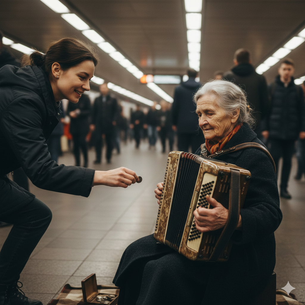 Каждый раз, проходя мимо, в семь часов вечера, Вероника бросала ей монеты, это был их своеобразный ритуал, а та кивала головой, не прерывая игры.