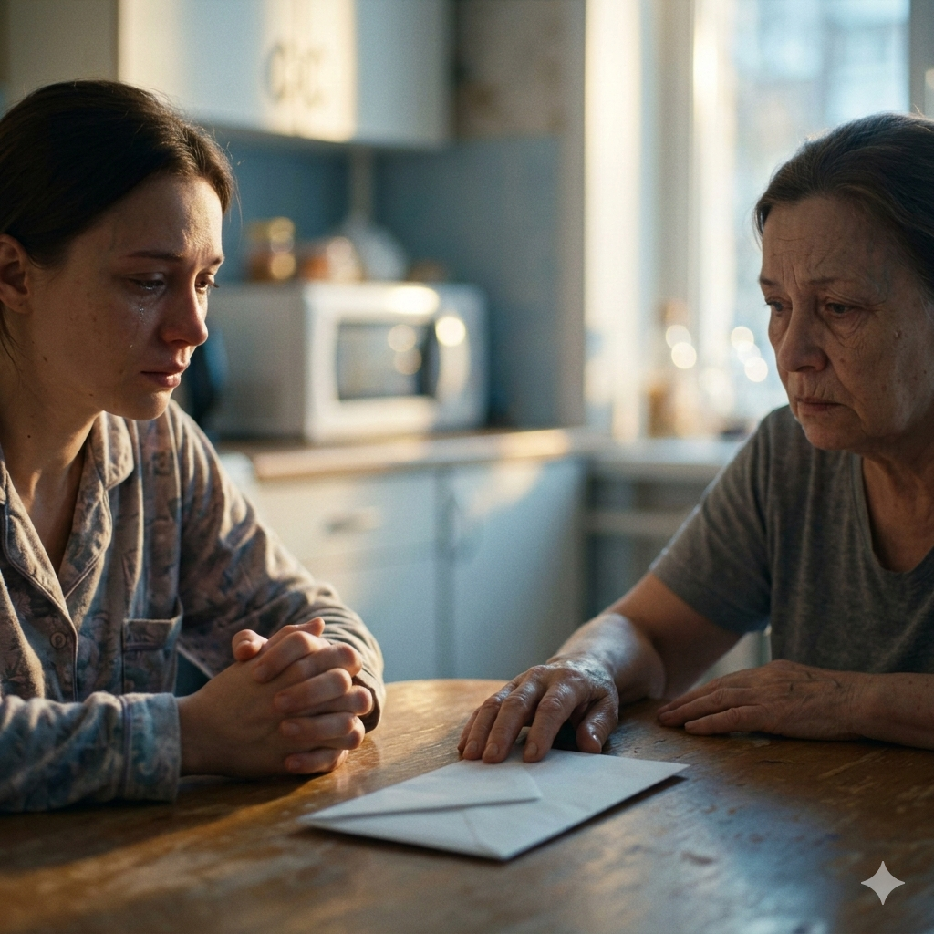 Я обернулась. Свекровь сидела, сжимая этот чёртов белый конверт. Плечи её вздрагивали.