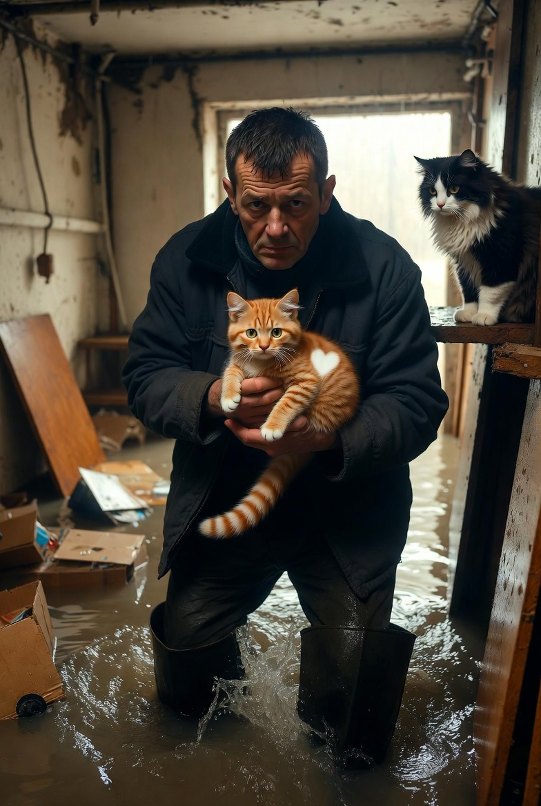 Павел лишь махнул рукой и пошёл к подвалу. Как он и предполагал, вода уже начала заполнять помещение. По полу плавали коробки и какие-то деревяшки. Он шёл по воде, повторяя: «Кис-кис-кис!»