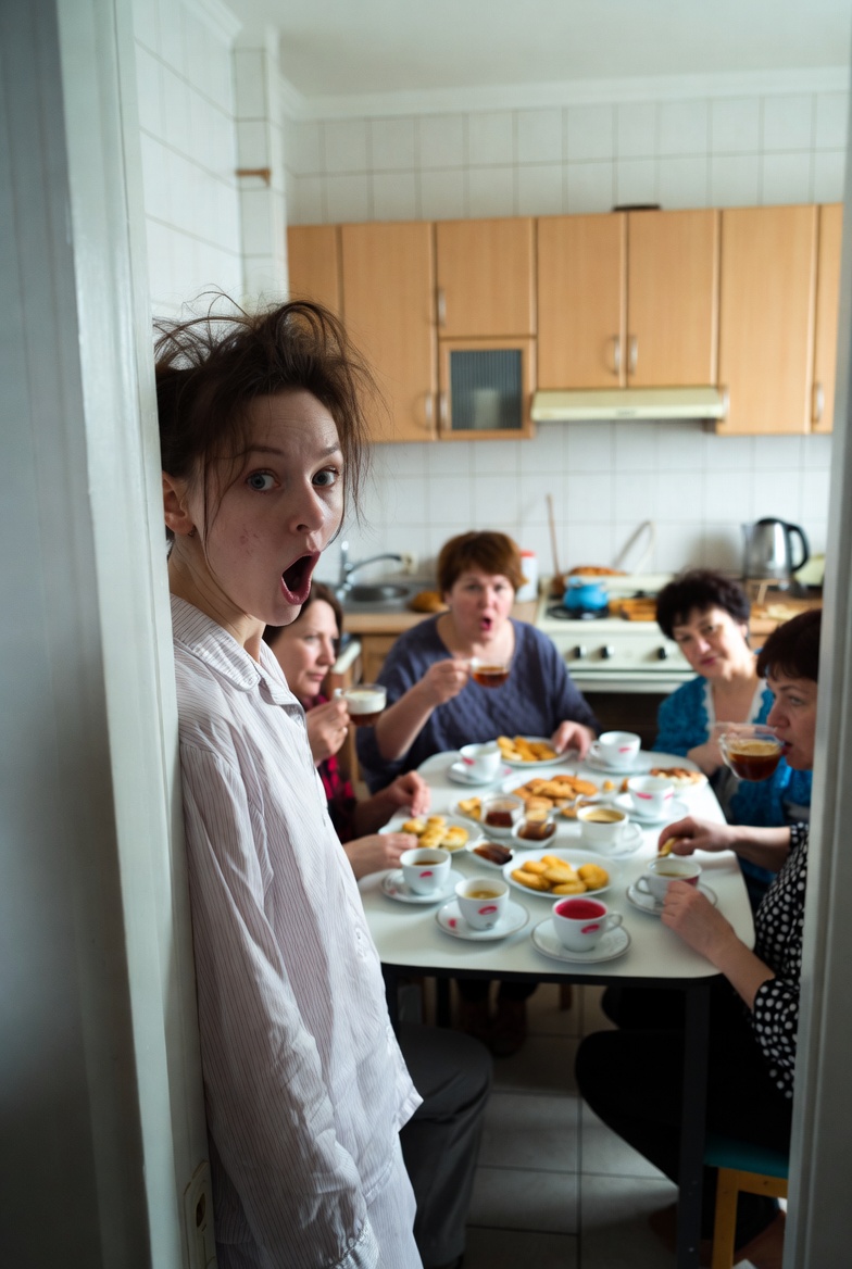 Ольга стояла в дверном проёме в пижаме, с растрёпанными волосами и отпечатком подушки на щеке. Пять чужих женщин смотрели на неё с любопытством. У Ольги задрожали руки. Ладони взмокли. Во рту пересохло.