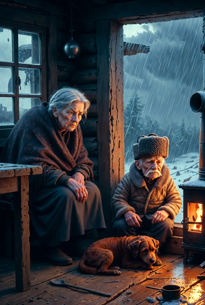 На крылечке под проливным дождем сидел дедок. Маленький, сухонький. В ушанке, ватнике и кирзовых сапогах. Рядом с ним свернулся в клубок пес бурой масти.