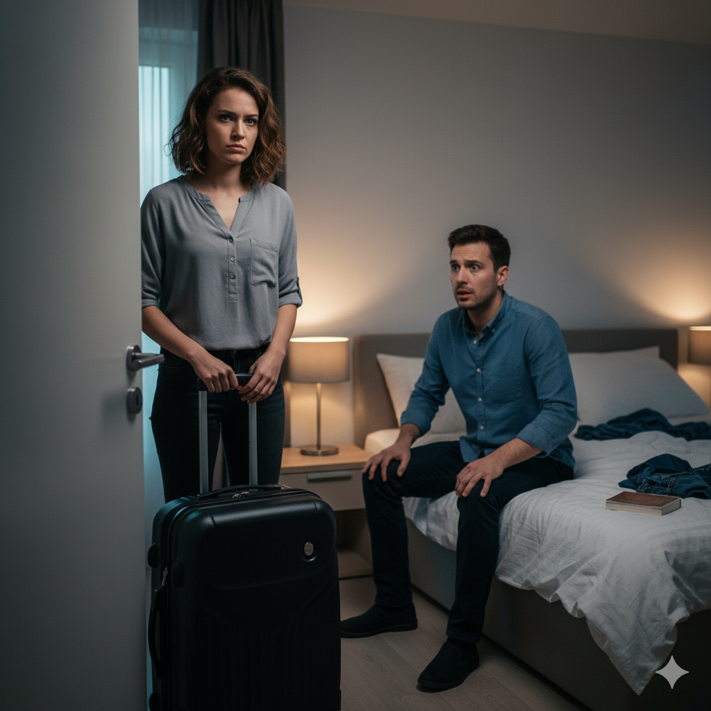 Виктор стоял в оцепенении, не в силах поверить в происходящее. Он смотрел то на чемодан, то на Анну, застывшую в дверном проёме.