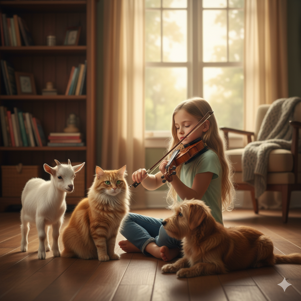 Девочка очень упрашивала родителей, но те не соглашались даже на рыбок. Дело в том, что у их ребёнка был явный музыкальный дар. Она с отличием училась в музыкальной школе по классу скрипки.