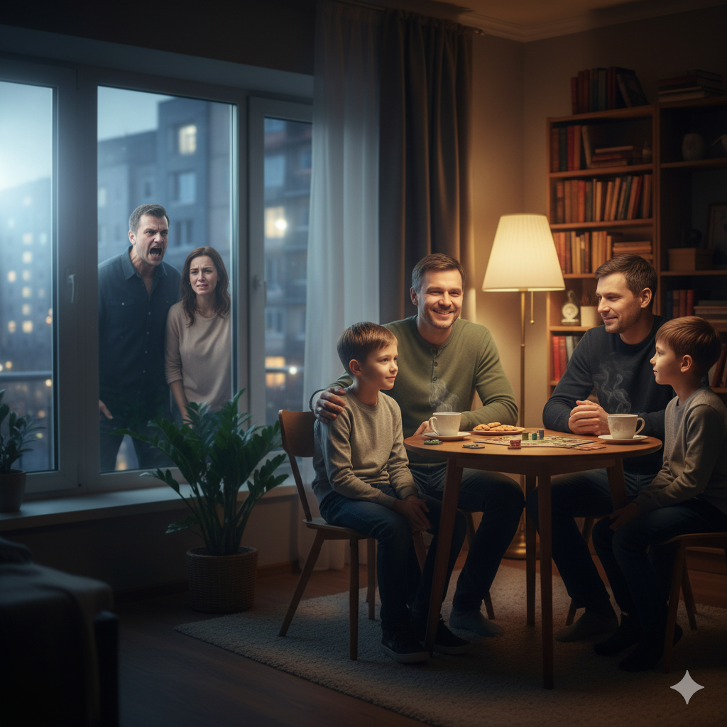 А Антон всё чаще уходил из дома к Сергею и Артёму. Он впервые чувствовал: вот тут — живое, настоящее. Смех ребёнка, запах жареных блинов, простые разговоры без крика и упрёков.