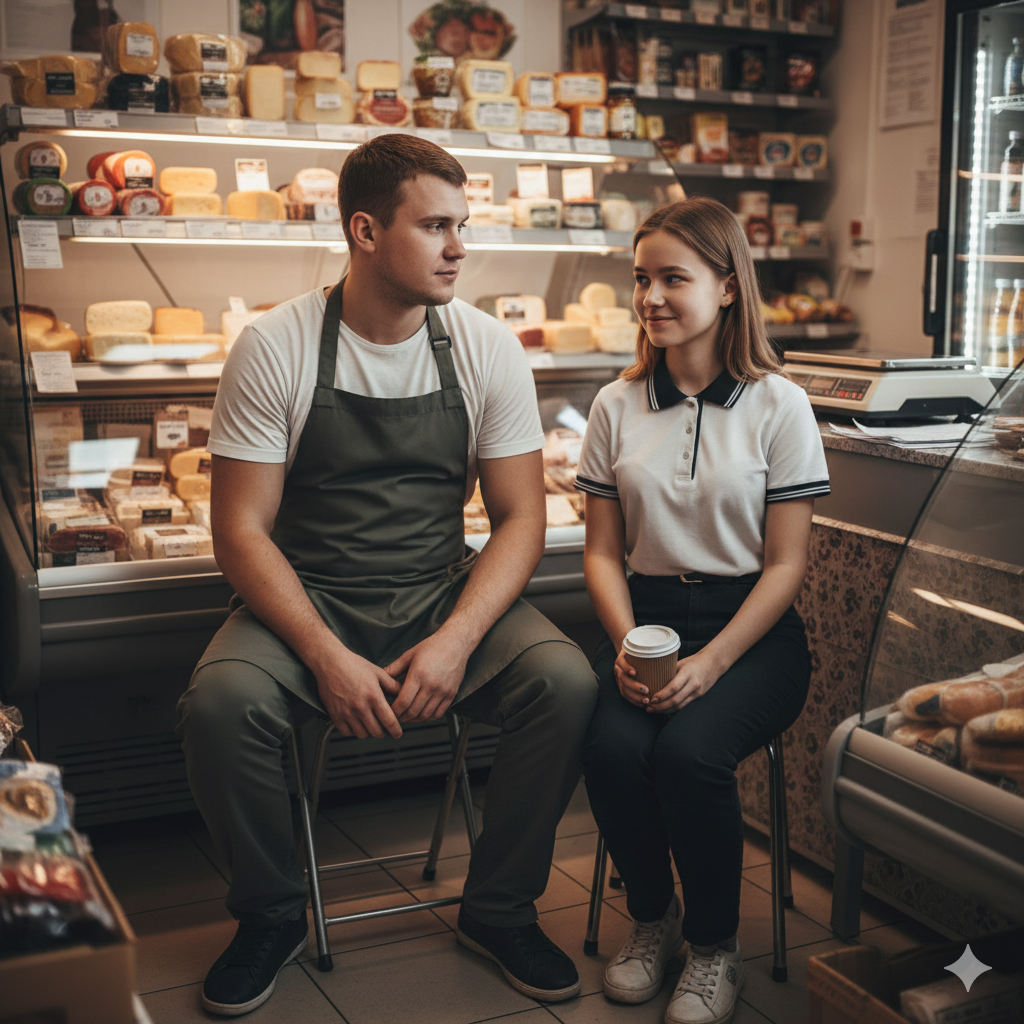 Оказалось, что вчера у неё стащили четыре палки сырокопчёной дорогущей колбасы – какой-то молодчик, изображающий из себя мажора, запудрили ей мозги, якобы выбирая товар для покупки, требуя показать то такую колбасу, то другую. Она стараясь угодить, выкладывала палки на прилавок, убирала, доставала новые. Подошли ещё какие-то типы, стали возмущаться, что тип задерживает очередь, слово за слово, завязалась ссора, переходящая в потасовку. Оля закричала, что вызовет полицию, и молодёжь, вроде как испугавшись, брызнула в разные стороны. И только потом девушка заметила недостачу. По всему видать, это были не “профессиональные” воришки, а просто дурная молодёжь устроила себе такую развлекуху. А у неё теперь недостача, и покрывать её нечем, зарплата через неделю, а денег остались копейки.
