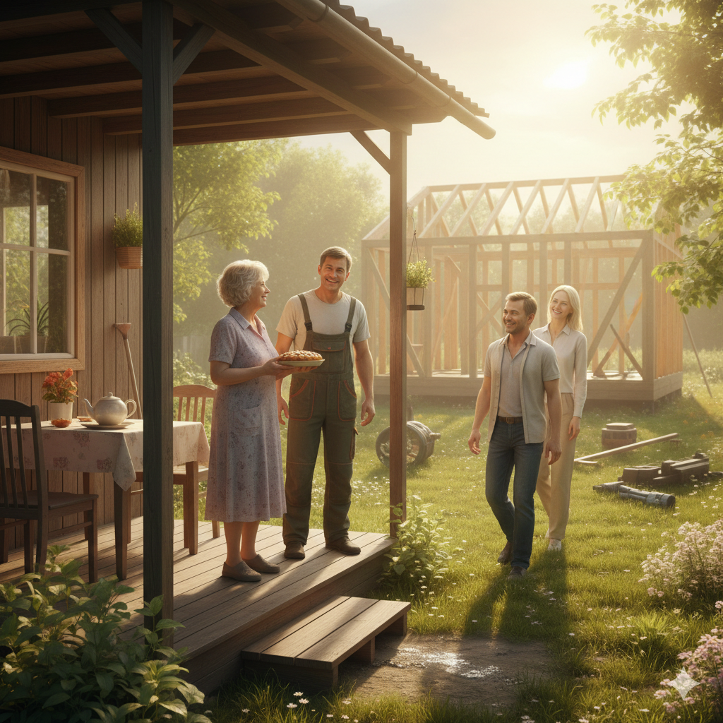 На следующее утро Иван Семёнович, в старых рабочих штанах, деловито орудовал шуруповёртом, помогая Аркадию собирать каркас для гипсокартона. Анна Петровна принесла им домашних пирожков.