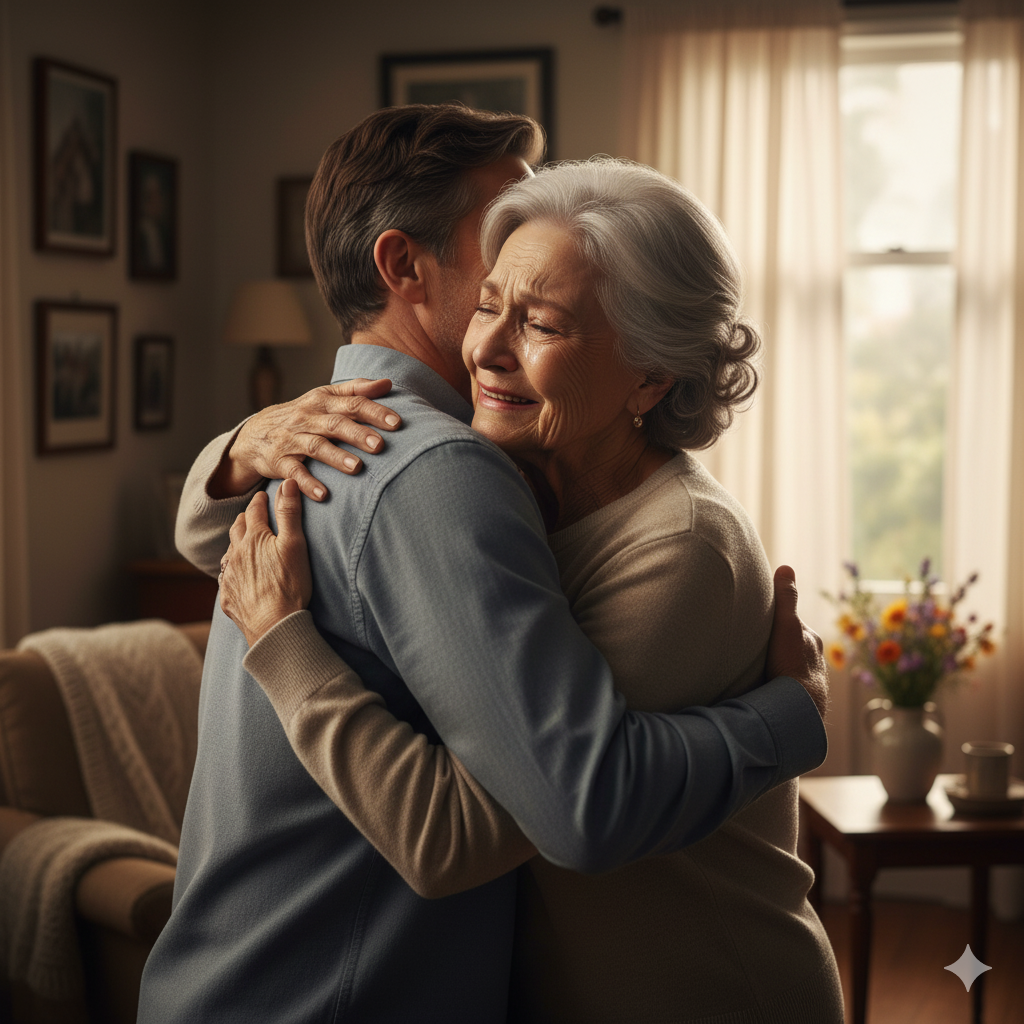 Она бросилась к сыну, уткнулась лицом в его грудь и разрыдалась так, как не плакала уже много лет — ни в одну ночь, когда сидела одна у окна, ни в минуты отчаяния. А он обнимал её, гладил седые волосы и повторял снова и снова: