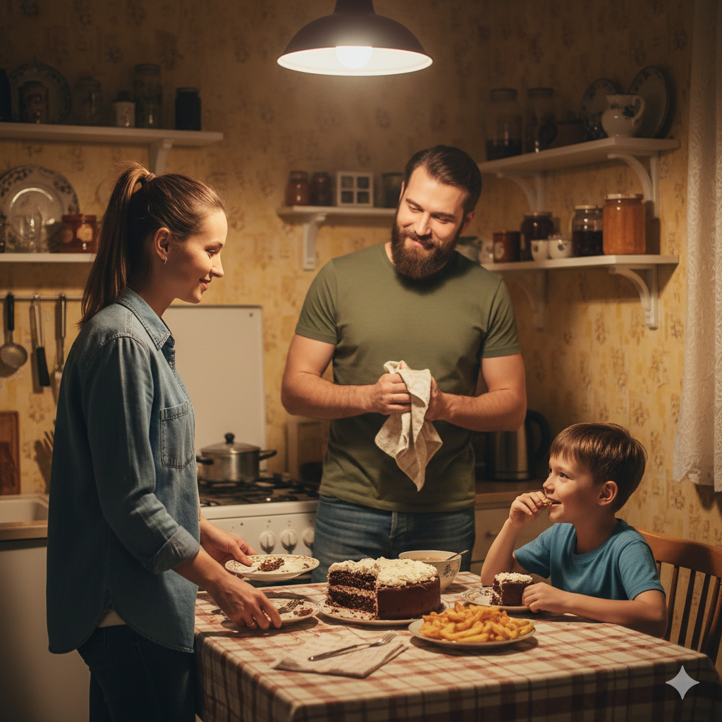 — Папа торт принёс, — сказал Женька. Его глаза сияли, но в них Ирина заметила тревогу.