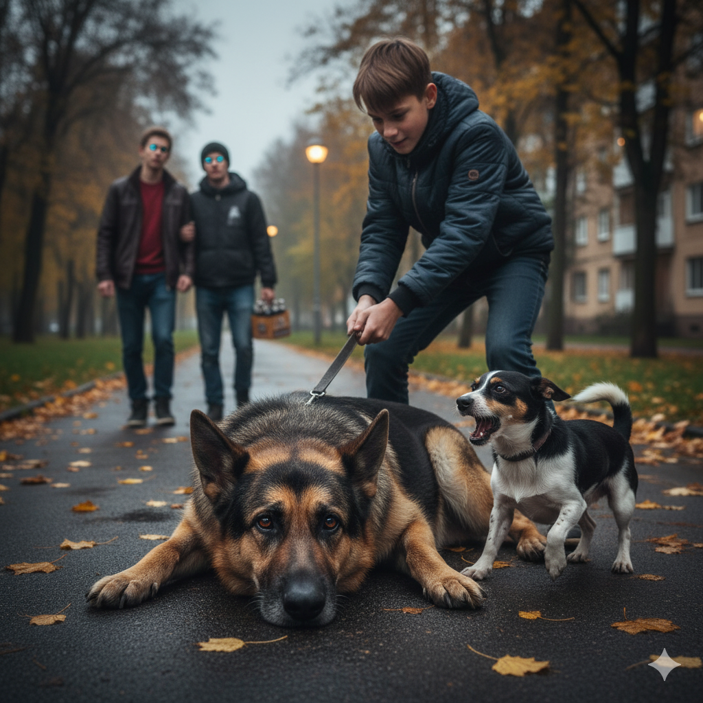 Но врезавшийся в шею ошейник и натянутый до предела крепящийся к нему поводок, крепко зажатый в руке молодого хозяина, несмотря на все сопротивление пса, продолжали делать свое дело…
