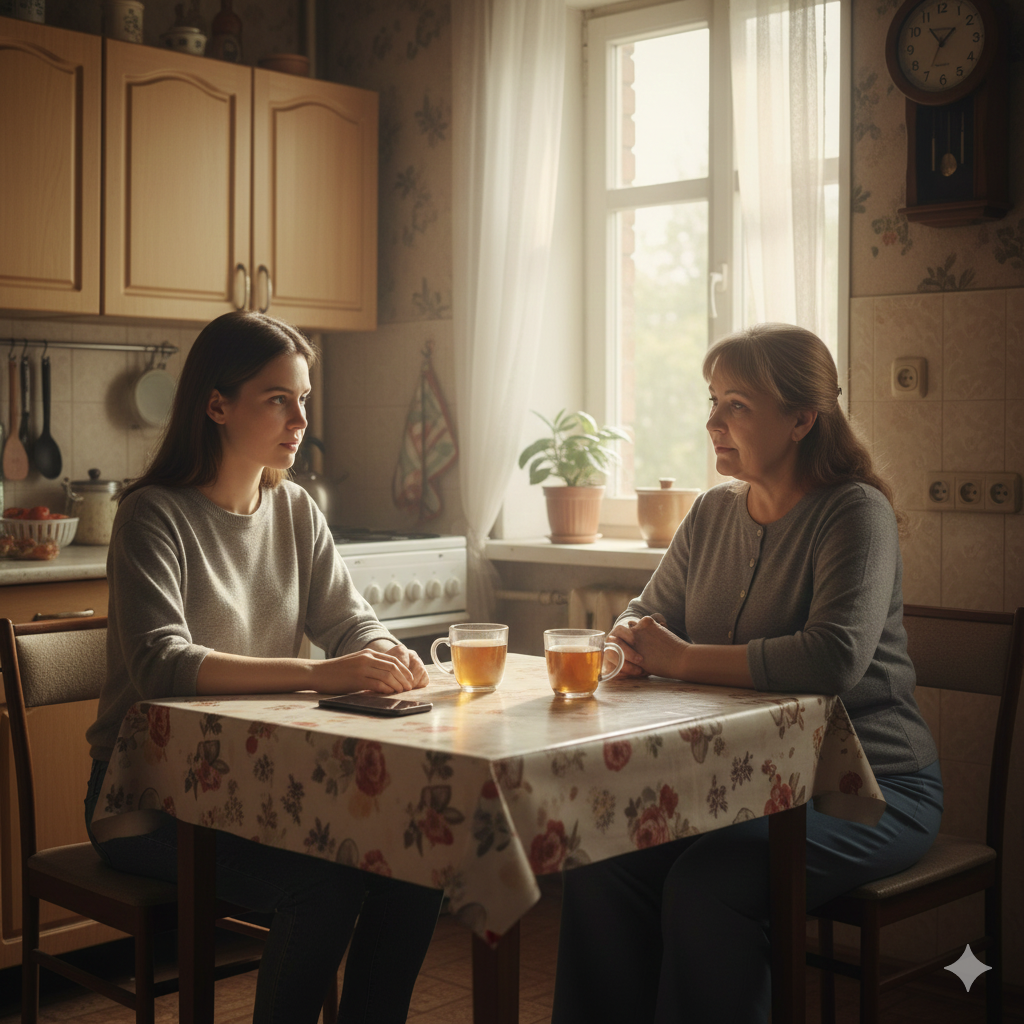 Мать стояла у плиты, помешивая суп. Она даже не обернулась. Просто резко бросила: