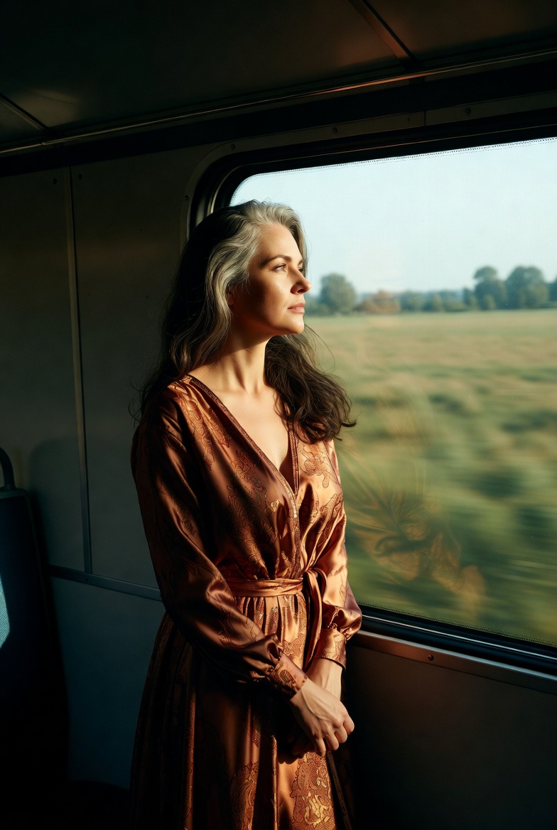 Тревога не отпускала. Она сидела в своем купе, бессознательно проводя ладонью по бедру, ощущая под тканью джинс не привычную мягкую округлость, а упругий, четкий контур мышцы. Платье, которое она надела — элегантное, приталенное, из смесового шелка, — висело на ней так, как она и мечтала: свободно, но не бесформенно, подчеркивая талию и плечи. Оно было куплено специально к этой встрече и лежало в шкафу с биркой еще полгода назад, когда она с тоской думала, что никогда его не наденет. Но сейчас оно было на ней.