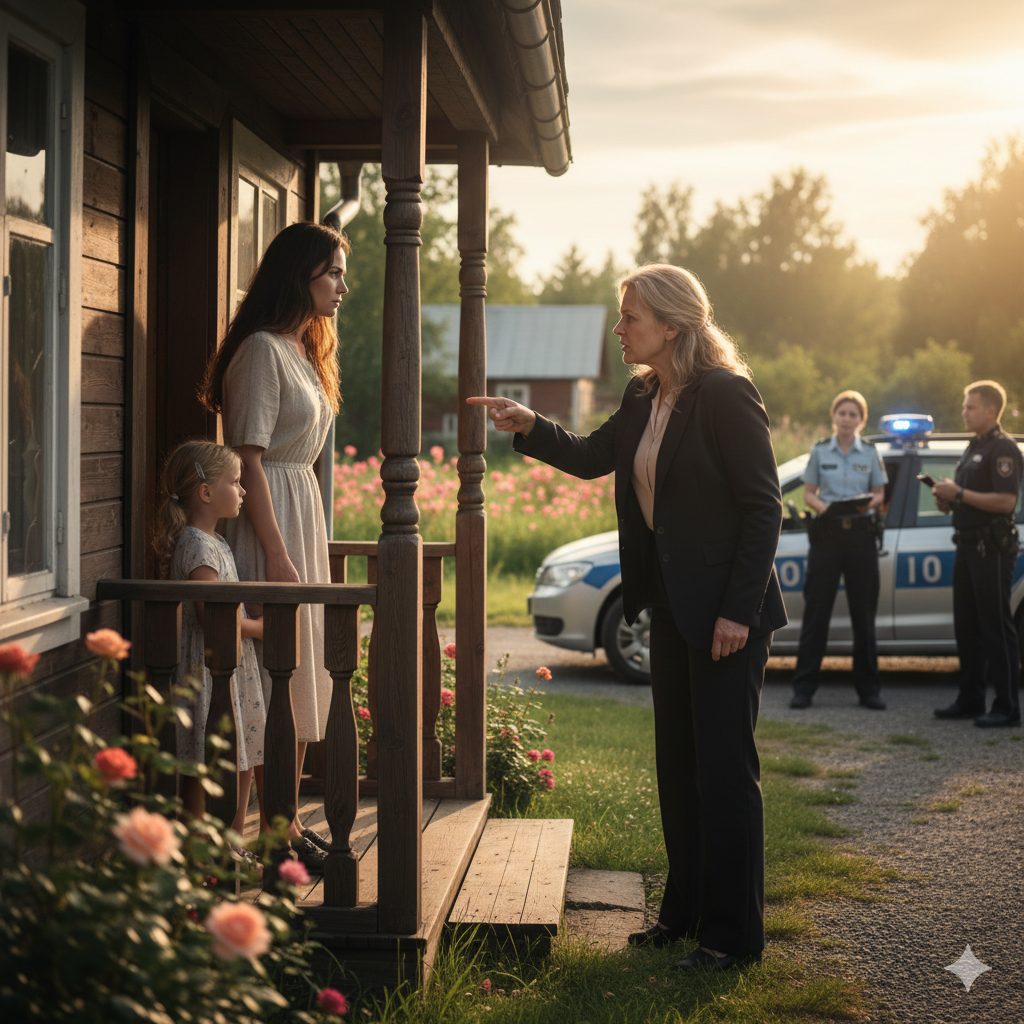 — И где это мы ходим? Не успела похоронить мужа, а уже с чужими мужиками по ресторанам ходишь. Вот ты как? А ребёнок где? От тебя пахнет алкоголем. Я вызываю… полицию. Ребёнка заберу себе.