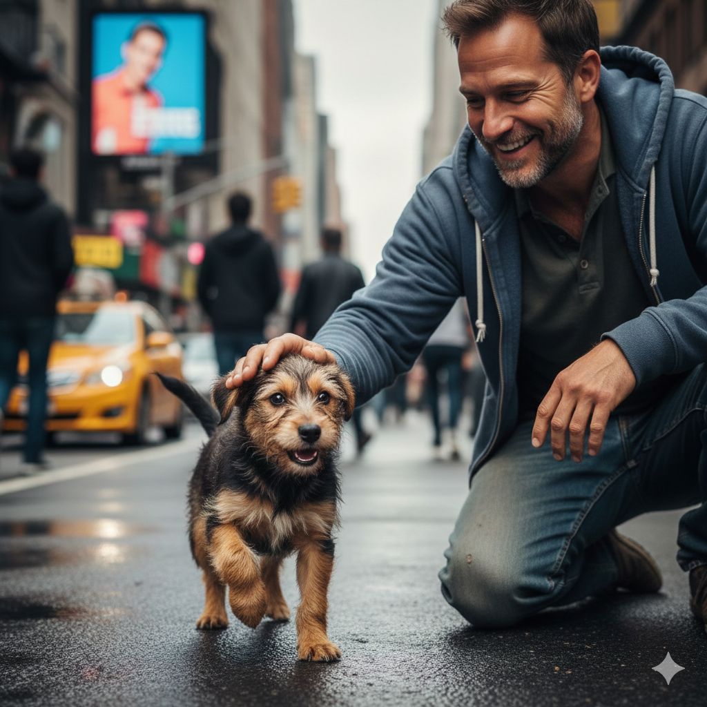 Он уже стал выбиваться из сил, когда человек вдруг остановился возле другого мужчины. Щенок решил, что незнакомец наконец-то возьмёт его на руки и заберёт себе. Он радостно взвизгнул и подбежал ближе.
