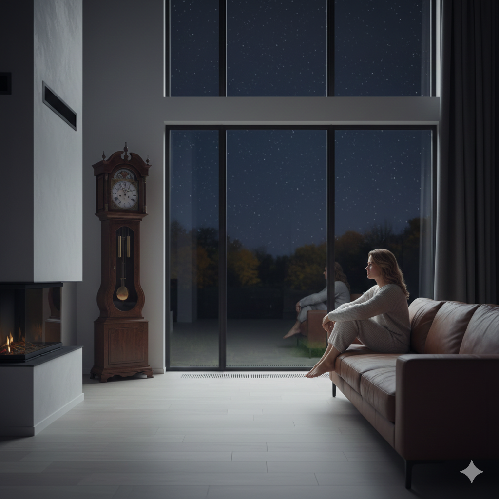 Тишину уютной, только что отстроенной гостиной в загородном доме разрывал лишь тикающий маятник старинных напольных часов, привезённых когда-то из антикварной лавки. Анастасия сидела на диване из мягчайшей кожи, обняв колени, и смотрела в огромное панорамное окно, за которым расстилался тёмный, усыпанный звёздами осенний небосвод. В доме пахло свежей краской, деревом и… пустотой. Целенаправленной, выстраданной пустотой. Она добилась своего. Мужа, Глеба, больше не было. Его чемодан, его запах бензина и дорожной пыли, его тяжёлые сапоги в прихожей — всё это исчезло. Остался только этот прекрасный, просторный, бездушный дом, который он построил для неё своими руками. Вернее, для них. Для семьи. Но семьи больше не было.
