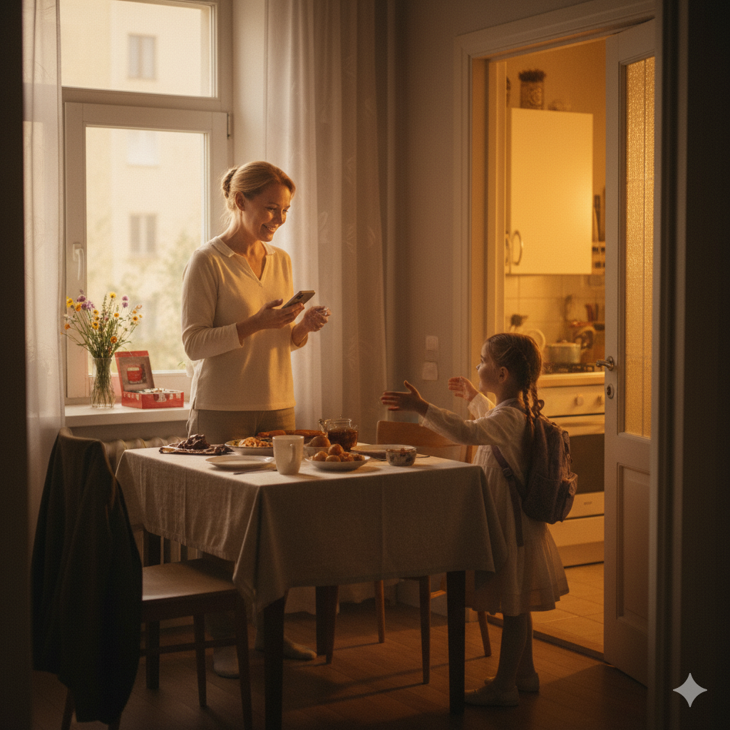 — Сейчас завтрак приготовлю, — и бросилась на кухню.