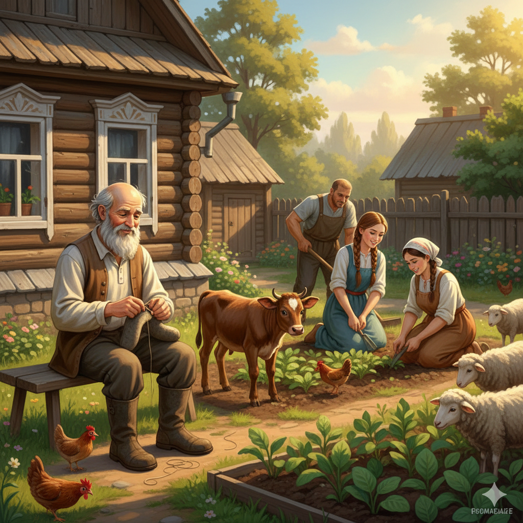 Дед Семен старый, под девяносто лет, но еще крепкий, держался на ногах, ходил потихоньку по дому и во двор выходил. На войне не был, старый был, не взяли. Сидя на скамейке подшивал старые валенки, лудил прохудившиеся ведра. В свои такие годы очень хорошо видел, не щурился подслеповато. Односельчане удивлялись и тащили к нему прохудившиеся ведра, тазики.
