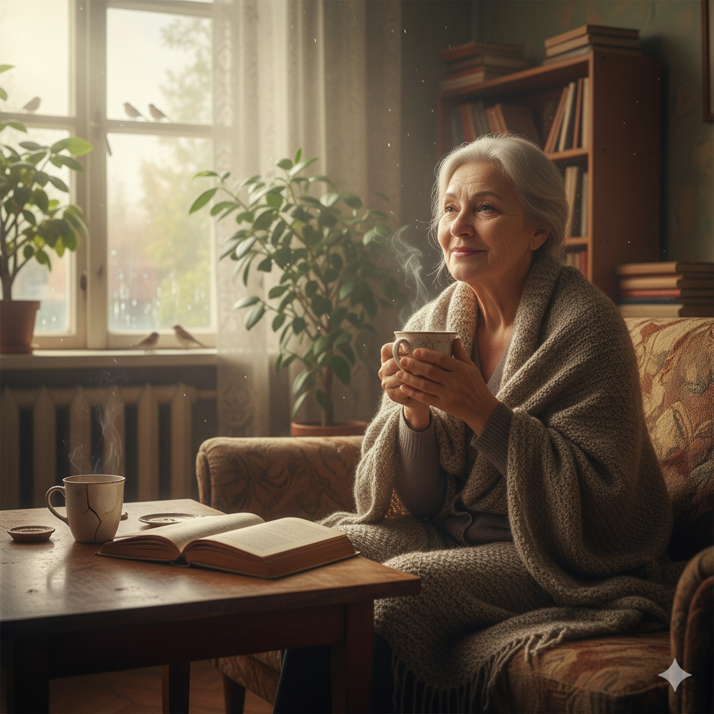 Собирая чемодан, я испытывала странное чувство. Брала не просто вещи — брала островки своего мира. Любимую подушку с вышитыми васильками, которую мне подарила мама. Старую белую кружку с отколотой ручкой — из неё пил чай ещё мой муж. Баночки с таблетками от давления. Тёплую шаль. Я смотрела на свои полки, заставленные книгами, на фикус у окна, на пятно от чая на журнальном столике — и мне казалось, что я ненадолго, на интересное приключение. Казалось, новая жизнь начнётся с чистого листа, где не будет места тихим вечерам в одиночестве, где кто-то будет тянуть меня за собой, вытягивать из болота привычной, безопасной рутины на свет.