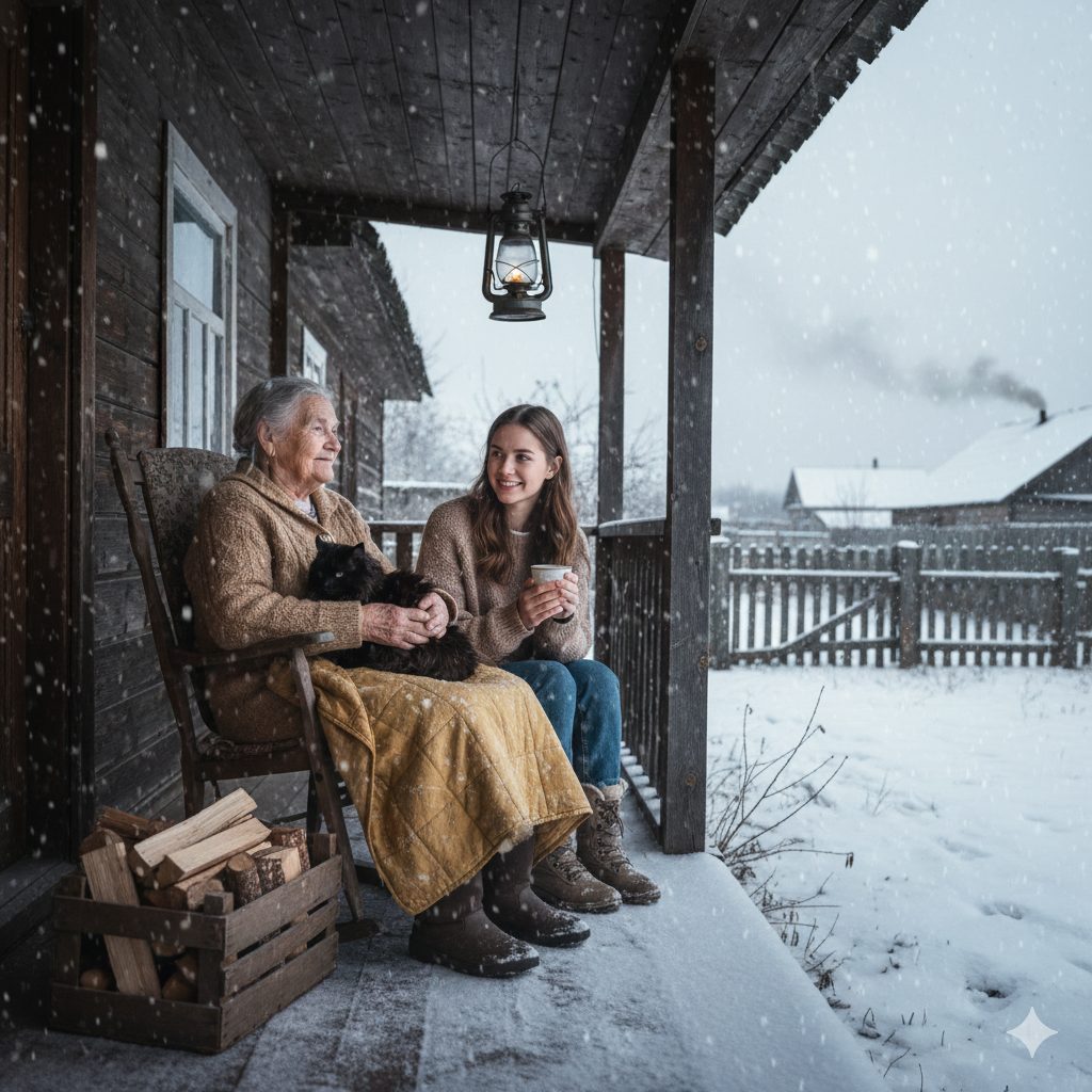 Татьяна взяла лопату и прогребла дорожку. После тёплой погоды было непривычно холодно. Мороз, ветер, снег. Татьяна позвала кота, и он с радостью проскочил в дом.