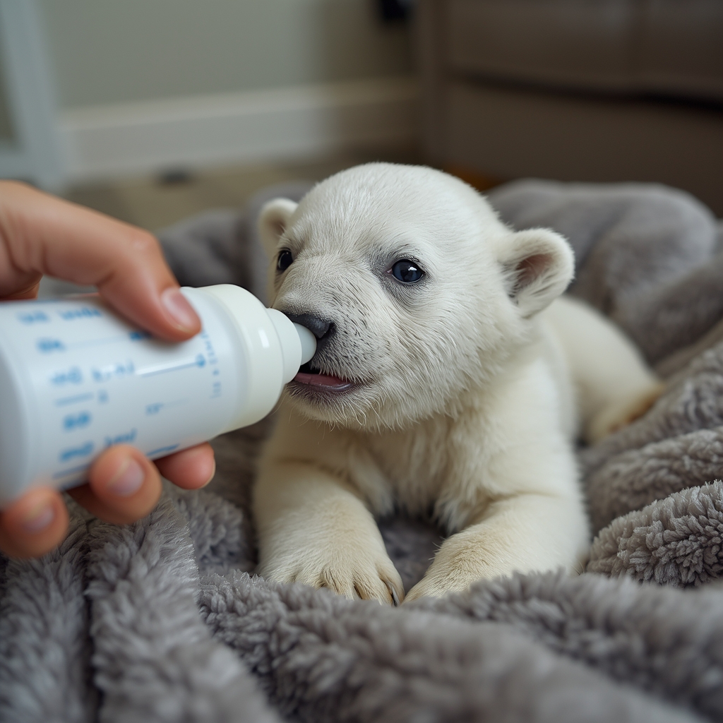 Малыша, брошенного ослабевшей матерью, привезли с севера, поместили в зоопарк и назначили одного работника ответственным по его кормлению.