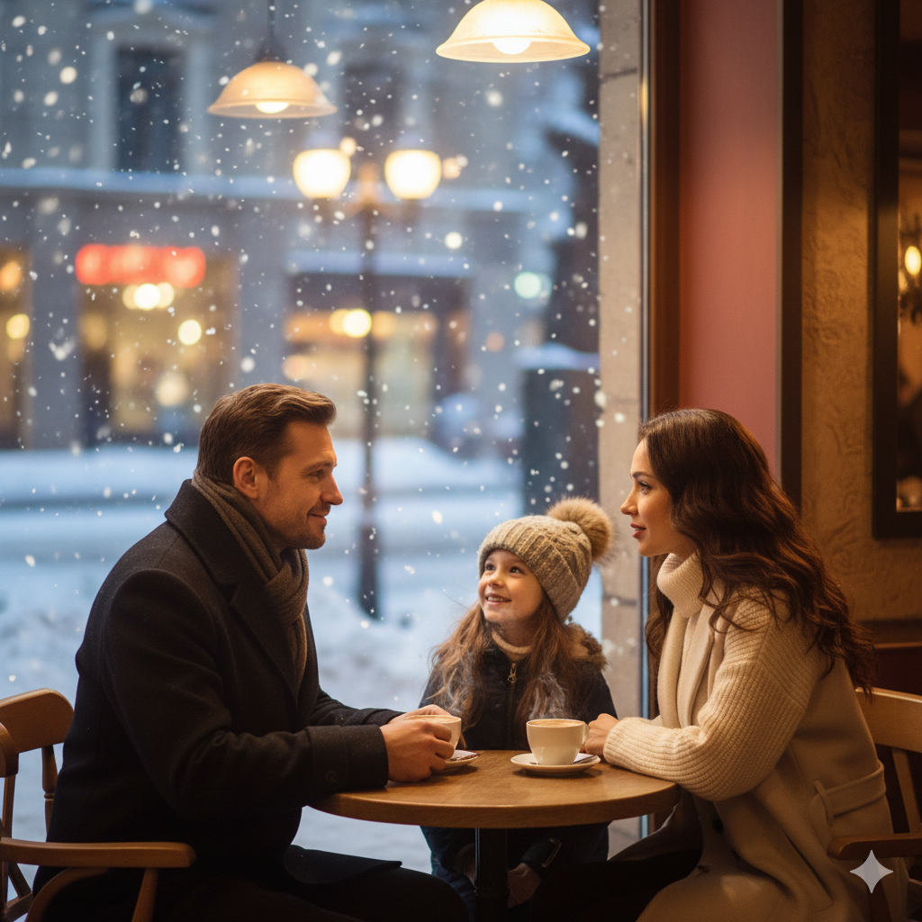Мы перешли дорогу, и девочка, которую, как выяснилось, звали Маша, влетела в кафе, таща меня за рукав. Внутри было тепло, пахло корицей и свежей выпечкой. Маша уверенно направилась к столику в углу, где сидела женщина. Я взглянул на неё — и слова застряли у меня в горле.
