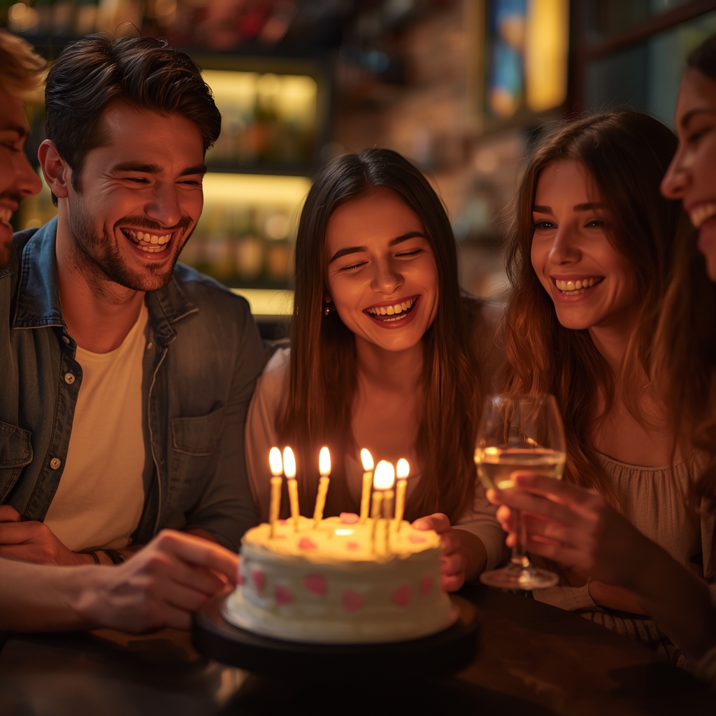 Денис стоял, обалдевший, а вокруг него толпились любимые друзья, обнимавшие его и поздравлявшие с днем рождения. Официанты, быстро навесив на дверь табличку “Закрыто на спецобслуживание”, споро расставляли на столах закуски. Банкет Соня и товарищи смогли позволить себе скромный, однако им очень помогла владелица кафе. Узнав, как сильно молодежь хочет устроить сюрприз другу, дала хорошую скидку и посоветовала, какие закуски заказать, чтобы было и много, и недорого.