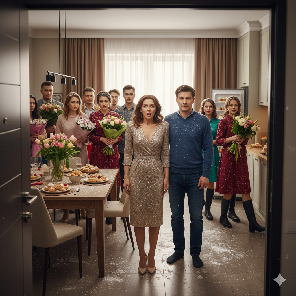 «А вот и мы! С Женским днём!» – в квартиру к Наташе ввалились нежданные гости.