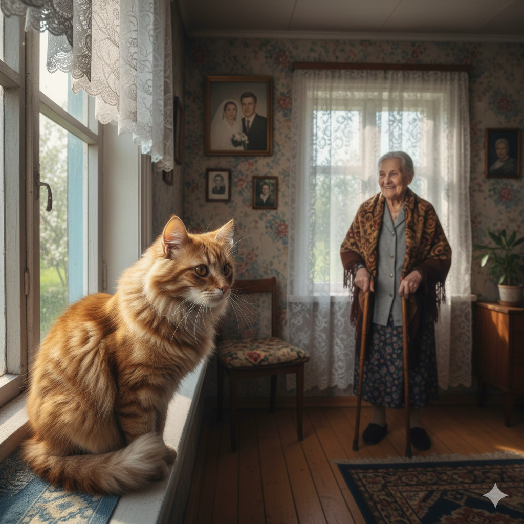 Ирина все так же гуляла с Петровной, а кот в это время сидел на окне и ждал хозяйку. Хорошо, когда кто-то тебе рад и ждёт.