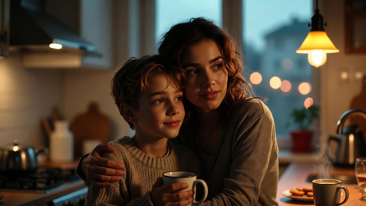 Лена прижала Ваню к себе, чувствуя, как сердце наполняется теплом. Его тонкие руки крепко обхватили её, а голова уютно устроилась у неё на плече. В этот момент всё остальное словно перестало существовать – остались только они вдвоём, их тихое дыхание и ощущение, что они действительно дома. Она знала: впереди ещё много трудностей, но теперь они вместе. И это главное.