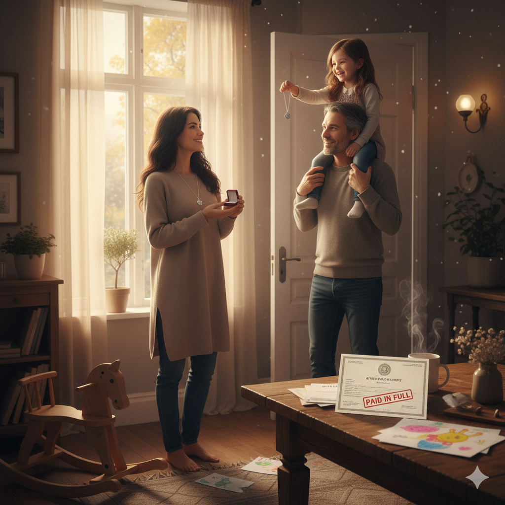 Всё изменилось в апреле. Анна, вернувшись с работы, увидела на столе папку с документами. На титульном листе красовалась надпись: «Справка об отсутствии задолженности по ипотеке». Рядом лежала коробочка с кольцом и записка: «Прости, что не сказал раньше. Я ждал, чтобы этот дом стал нашим по-настоящему. Выходи за меня, пока я не передумал».