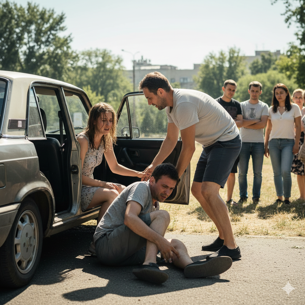 Паша тем временем подхватил мужика под руку и отвёл в тень под дерево. Из машины принёс бутылку воды — мужик жадно хлебнул, обрызгал футболку и хрипло пробормотал: